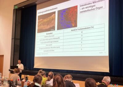 - Julia Fritz, Veranstalterin, Expertin für Tierernährung und Inhaberin von napfcheck, bereicherte das Programm mit Vorträgen rund um die Ernährungsphysiologie und die ethologischen Bedürfnisse der Katze. Sie gab zahlreiche praxisnahe Tipps zur optimalen Fütterung und zeigte anhand anschaulicher Fallbeispiele nicht-medizinische Ursachen für mäkeliges Fressverhalten. Auch beleuchtete sie die eng verknüpften Themen Diabetes und Adipositas mit besonderem Fokus auf den Einfluss von Kohlenhydraten (NfEs), Ballaststoffen sowie Pro- und Präbiotika.