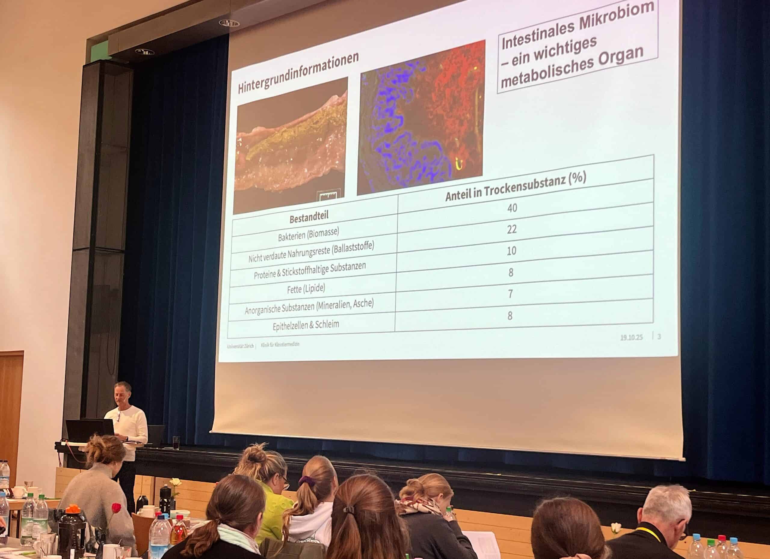 - Dr. Stefan Unterer, Leiter des Klinik für Kleintiermedizin am Tierspital Zürich, vermittelte anhand von aktuellen wissenschaftlichen Studien und praktischen Fallbeispielen fundierte Einblicke zu den Themen Pankreas-, Leber- und Darmerkrankungen. Besonders sein Vortrag „The good, the bad and the ugly – Umfangsvermehrungen im Darm der Katze“wurde von den Teilnehmenden mit großem Interesse aufgenommen.